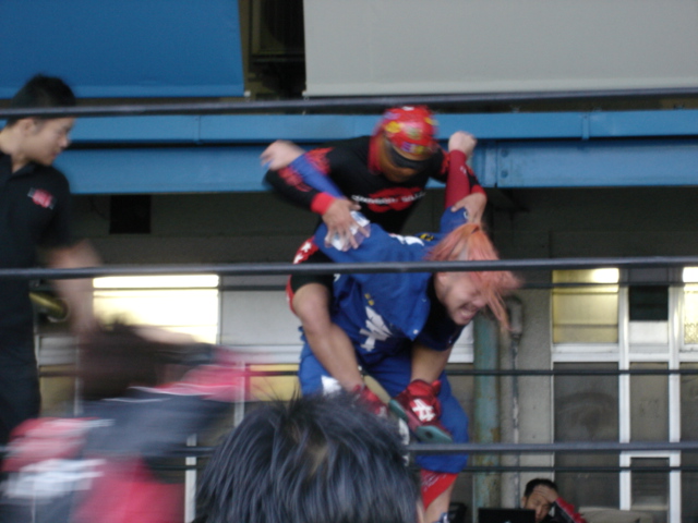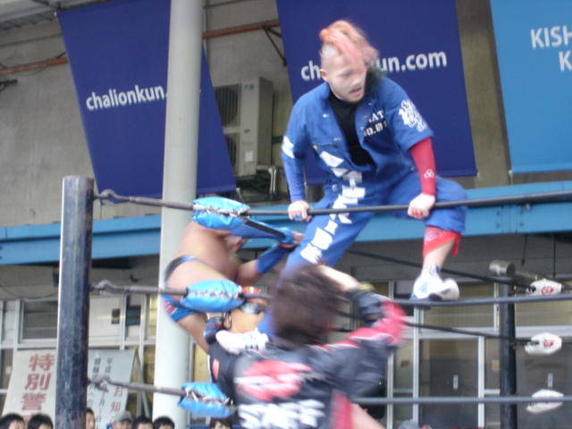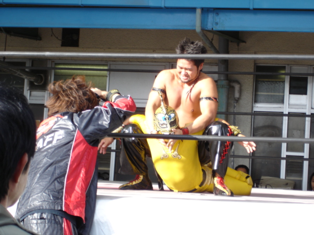 前日にトライアングルのタイトルマッチに挑んだしゃちさん。