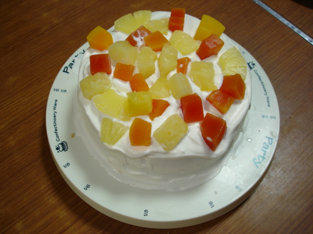 後は、生クリームとフルーツ缶があればバースデーケーキの出来上がり。